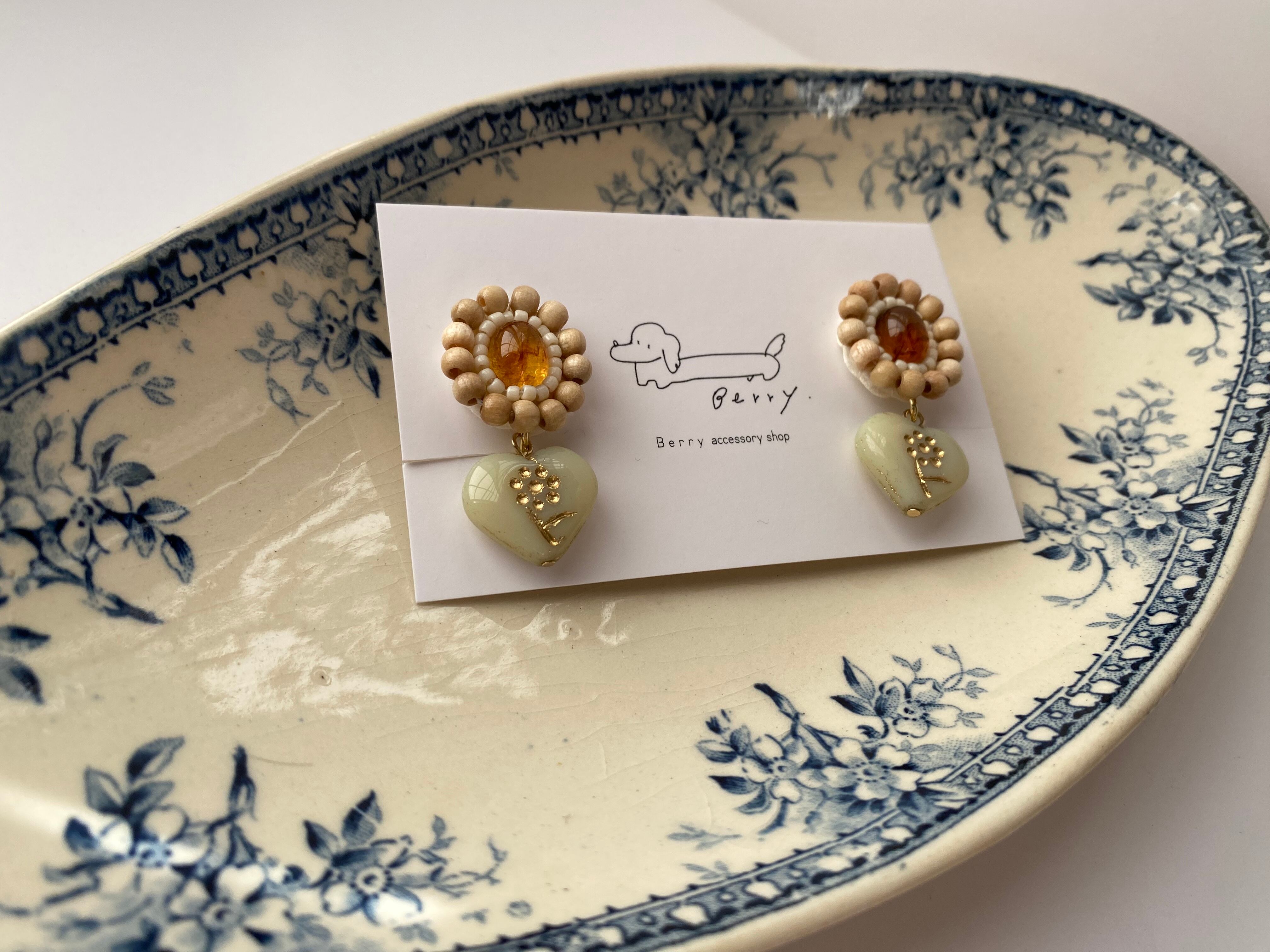 [なくなり次第終了)sweet heart (beige) サージカルステンレスピアスのみ